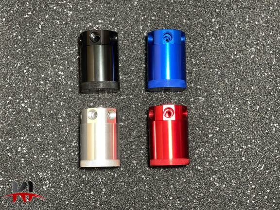 - CNC 6061 billet alloy compact serviceable dual baffled catch can with a 50 micron bronze filter and internal air diverter,