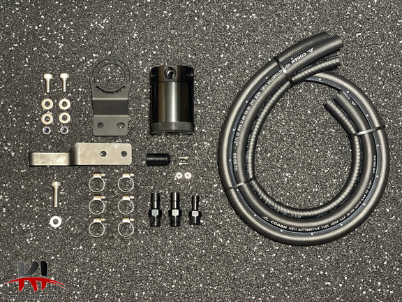 This kit features a compact dual baffled 3 port catch can which is made from CNC 6061 billet alloy, it utilises the PCV and crankcase ports and catches the gaseous oil fumes that build up before redirecting the clean air into the front intake. This means that the gaseous oil fumes are effectively filtered out via the dual baffle system which will not allow any oily sludge to build up inside your intake and intake valves.